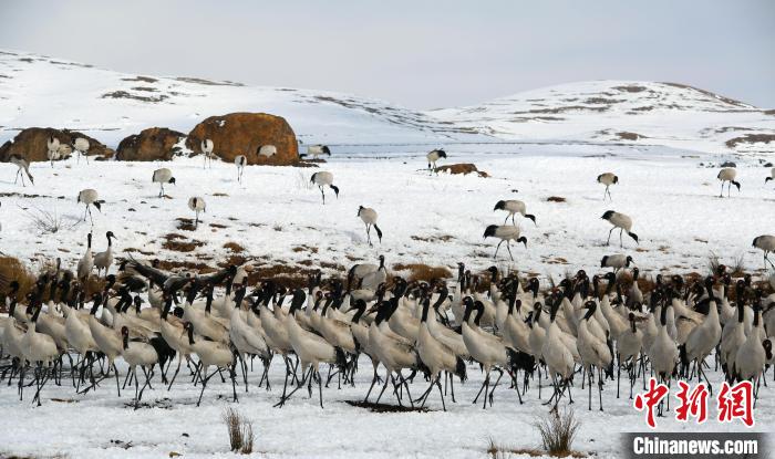圖為在云南昭通大山包過(guò)冬的黑頸鶴。(資料圖) 吳太平 攝