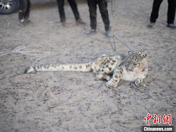 據(jù)駐村工作隊(duì)工作人員鄭殿之介紹,這只雪豹吃飽喝足后仍“賴在”羊圈,當(dāng)被牧民發(fā)現(xiàn)后,佯裝虛弱。被捕捉后,工作人員檢查無(wú)傷后,便將雪豹放歸了自然。
