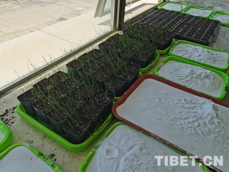 圖為西藏自治區(qū)農(nóng)牧科學(xué)院草業(yè)科學(xué)研究所科技人員在開展野生牧草種子生理試驗