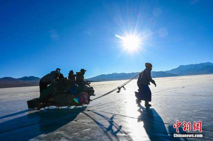 這個(gè)邊境小村3日迎來(lái)了一年一度的“趕羊”盛事。村民們將1400余只羊由岸邊通過(guò)厚實(shí)的冰面趕往湖心島牧場(chǎng)。普姆雍措被稱(chēng)為“仙女之淚”,位于西藏山南市浪卡子縣,每到冬季極寒時(shí),便是羊群轉(zhuǎn)牧場(chǎng)的好時(shí)機(jī)。