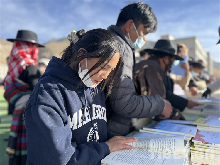 在送“書籍” 現(xiàn)場,《西藏文學》《西藏文藝》《邦錦梅朵》三個編輯部工作人員為現(xiàn)場群眾和當?shù)馗刹抠浰蜁?,當?shù)厝罕姾蛯W生們紛紛前來翻看尋找自己喜歡的書籍,大家人手幾本書?!拔移綍r喜歡閱讀藏文文學作品,這次要了兩本文學相關書籍拿回家閱讀”17歲的益西巴珍說。據(jù)了解,此次活動西藏文聯(lián)向熱愛閱讀的群眾和學生共贈送1500本(冊)文藝書籍和期刊。