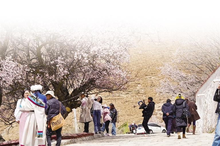 帕邦喀距離拉薩市區(qū)不到一小時(shí)車程,每年桃花盛開的時(shí)候,帕邦喀便成為人們賞桃花、踏春游的熱門景點(diǎn)。昔日里略顯安靜的帕邦喀此時(shí)也因賞花的人們熱鬧起來。帕邦喀桃花盛開的美景也在微信朋友圈、短視頻平臺(tái)等社交媒體上刷屏,吸引著大批市民游客拍照打卡。