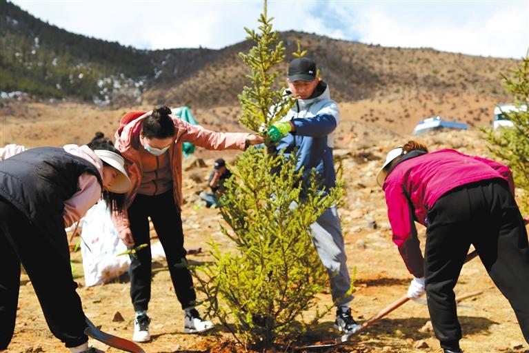 4月7日,西藏自治區(qū)生態(tài)環(huán)境廳開展“攜手共植愛心樹 我為拉薩添新綠”聯(lián)合主題黨日活動(dòng),組織黨員干部職工義務(wù)植樹,為高原添綠增色。趙礦 周文良 攝