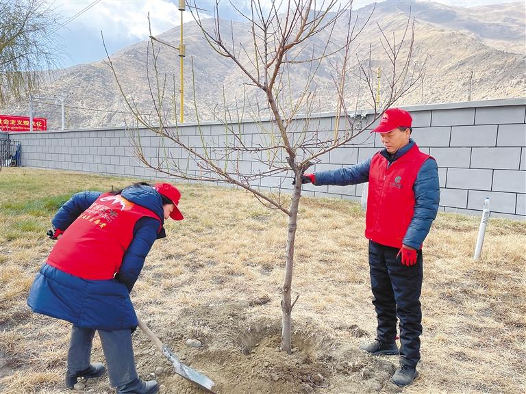 拉薩市城關(guān)區(qū)娘熱街道植樹(shù)護(hù)綠 美化家園