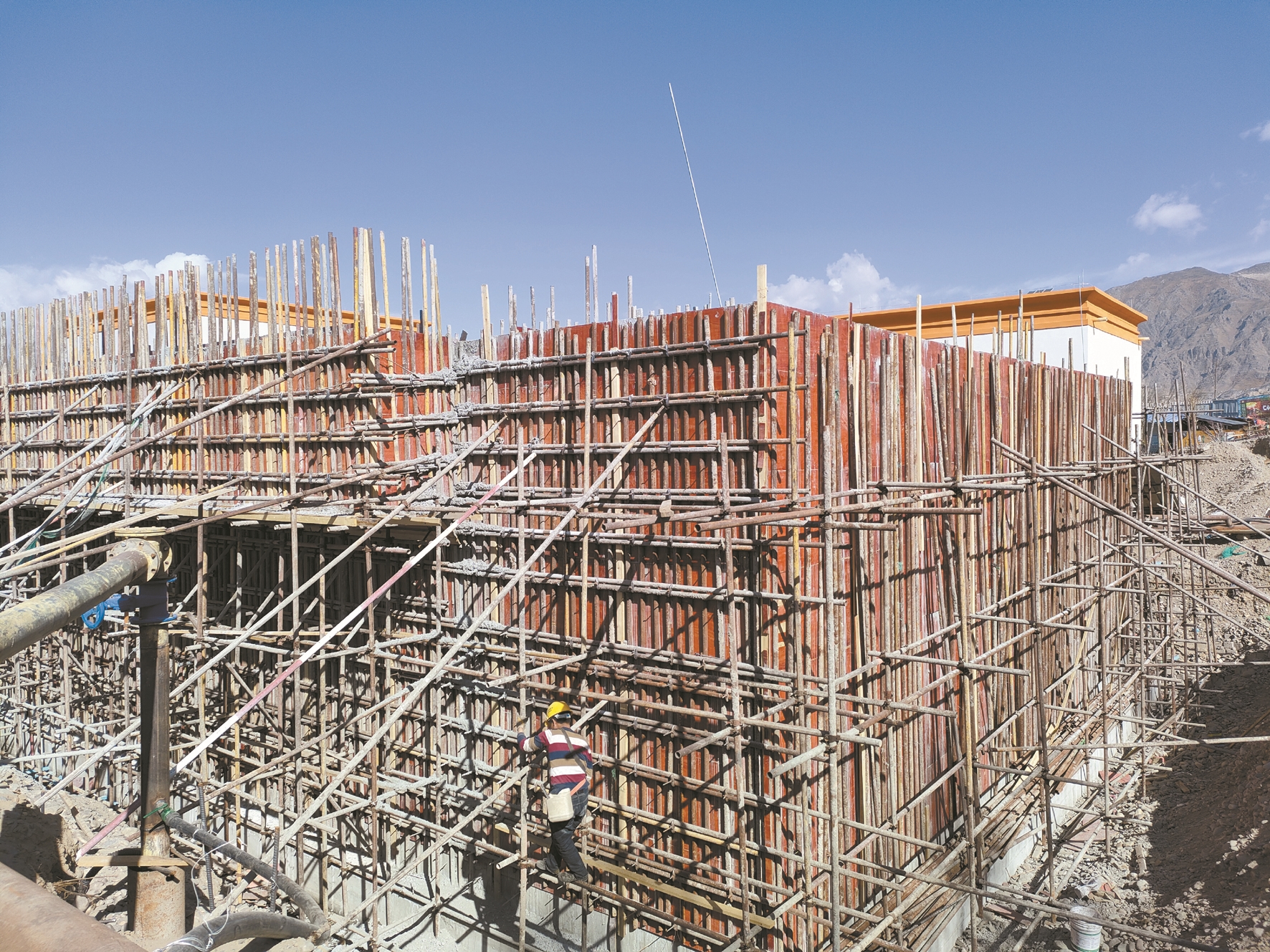 圖為施工現(xiàn)場(chǎng),工人正在加緊作業(yè)。拉薩融媒記者 李從芳攝