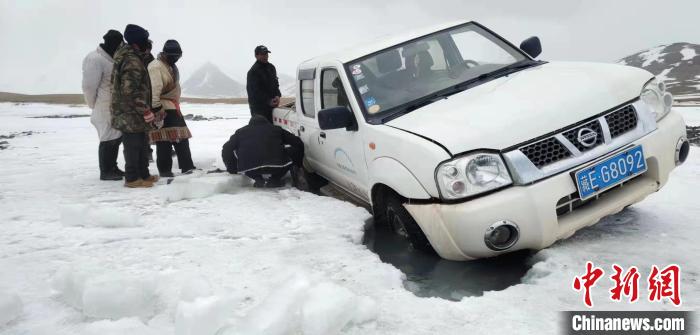 圖為巡護(hù)車(chē)輛陷車(chē)?!≈x昆軍供圖