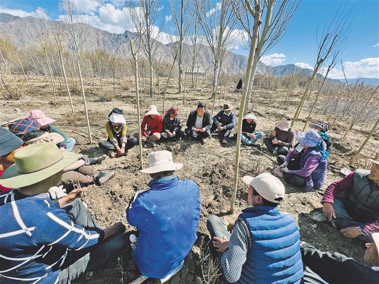 圖為植樹現(xiàn)場(chǎng),群眾認(rèn)真聽宣講員解讀黨的二十大精神。記者 央金 攝