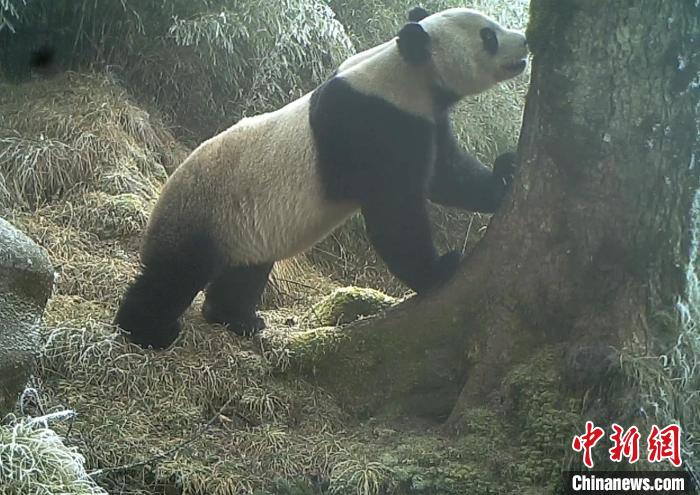 紅外相機(jī)拍攝到的野生大熊貓?!〈笮茇垏?guó)家公園平武老河溝片區(qū)供圖