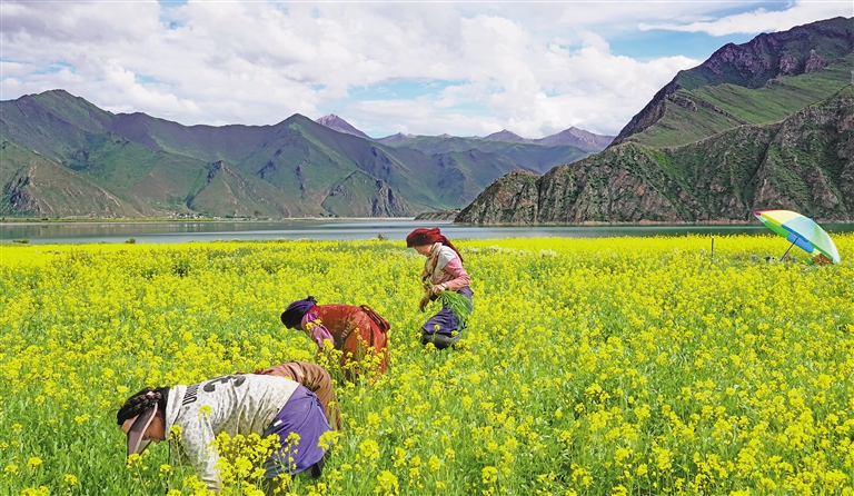 墨竹工卡距離拉薩市區(qū)68公里,是拉薩的“東大門”,平均海拔4200米,總面積5500平方公里,6.5萬(wàn)人。近年來(lái),墨竹工卡縣致力于墨竹小油菜“三產(chǎn)融合”發(fā)展,壯大一產(chǎn)、提升二產(chǎn)、延伸三產(chǎn)。2023年墨竹工卡縣共種植墨竹小油菜3.03萬(wàn)畝,油菜籽產(chǎn)量預(yù)計(jì)達(dá)0.45萬(wàn)噸,預(yù)計(jì)實(shí)現(xiàn)總產(chǎn)值3600萬(wàn)余元。2022年縣菜籽油榨油廠通過(guò)與當(dāng)?shù)厝罕姾炗喪召?gòu)合同,帶動(dòng)4600余戶農(nóng)戶增收400.6萬(wàn)元。墨竹旅游業(yè)呈現(xiàn)快速發(fā)展的勢(shì)頭,接待服務(wù)能力明顯提高。今年上半年,全縣接待旅游者3.8萬(wàn)人次、同比增長(zhǎng)90%,旅游總收入331.45萬(wàn)元,同比增長(zhǎng)259.7%。文/圖 記者 張雪芳