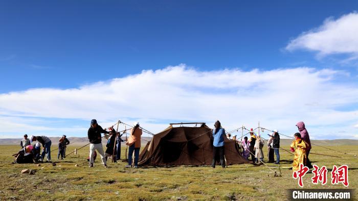 圖為青少年與牧民共同搭建帳篷。拉薩市圖書(shū)館供圖