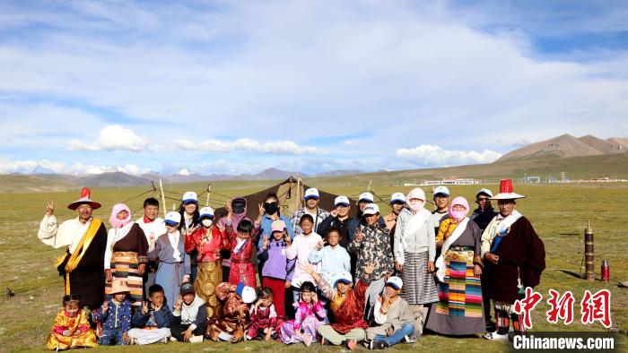 圖為青少年與牧民體驗(yàn)?zāi)ヴ佤?。拉薩市圖書(shū)館供圖