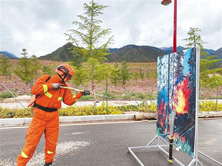 消防員進行水槍操作訓(xùn)練,不斷豐富實戰(zhàn)化訓(xùn)練內(nèi)容。
