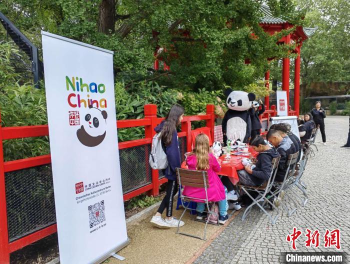8月31日,柏林中國文化中心在熊貓館旁設立了展位,向游客們推廣大熊貓主題文化。柏林中國文化中心供圖