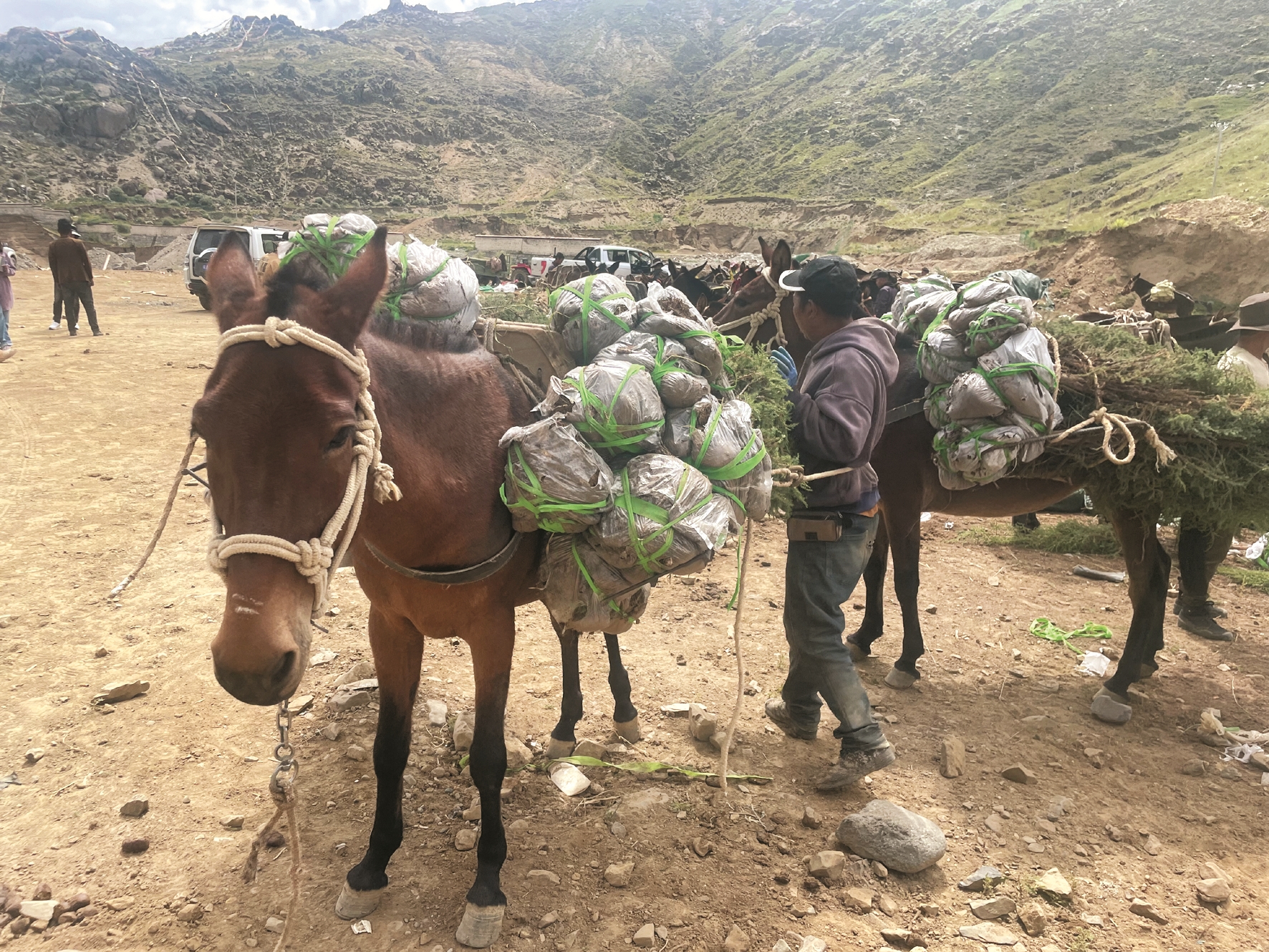 在堆龍德慶區(qū)乃瓊鎮(zhèn)色瑪造林片區(qū),植樹造林面積有4876.2畝,種植沙棘、祁連圓柏、油松等苗木共計58.79萬株。該植樹造林點位于山頂,山路陡峭,為了將苗木運送上山,施工單位雇傭了群眾騾馬隊,每天保障100匹騾馬幫助運送苗木。施工現(xiàn)場,騾馬隊按規(guī)范將苗木進(jìn)行分裝,每匹騾馬分裝苗木10余株,運送上山后由工人栽種。騾馬隊每天能運送苗木5000株。