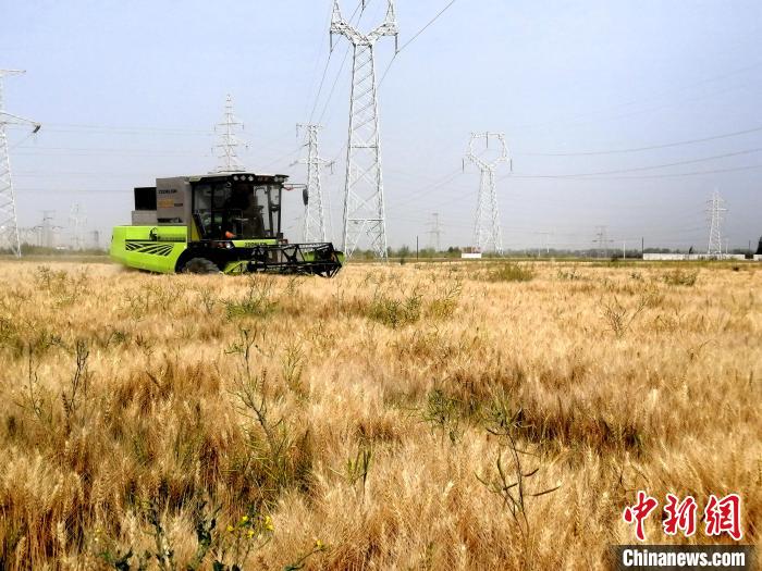 連日來,中國“鹽湖城”青海省格爾木市小麥進入收割期。田野里,機聲隆隆,一臺臺聯合收割機穿梭麥田中,“吞”穗“吐”麥,一派豐收景象。