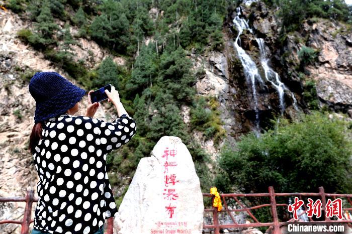 圖為游客在互助北山國(guó)家森林公園內(nèi)拍照留念。薛蒂 攝