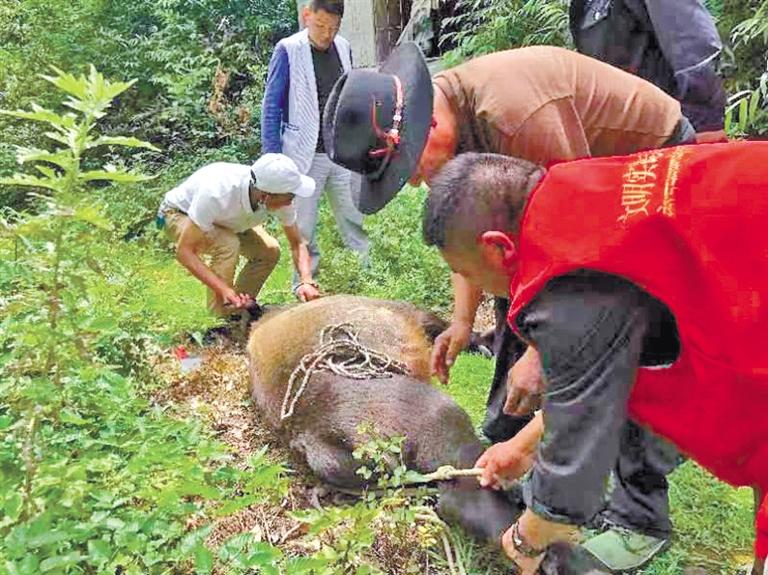 林芝市林業(yè)和草原局工作人員在林芝排龍救助的受傷羚牛,現(xiàn)已放歸排龍。 (林芝市林業(yè)和草原局提供)