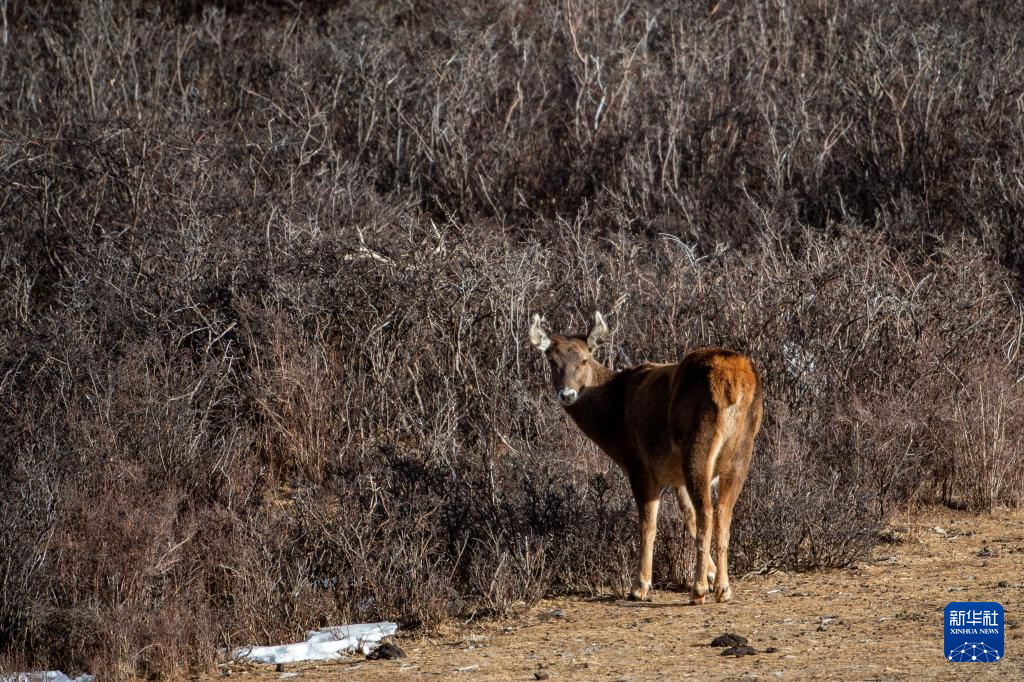 西藏山南市桑日西藏馬鹿縣級自然保護區(qū)內的西藏馬鹿(1月14日攝)。新華社記者 田金文 攝