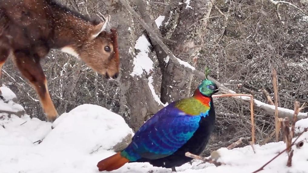 近日,“新春走基層”記者在中國與不丹交界的西藏洛扎縣拉康鎮(zhèn),拍到了喜馬拉雅斑羚和棕尾虹雉兩種珍稀野生動物同框的畫面。喜馬拉雅斑羚和棕尾虹雉均是國家一級保護動物。