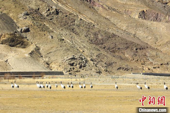 圖為悠閑覓食的黑頸鶴。薩迦縣宣傳部供圖