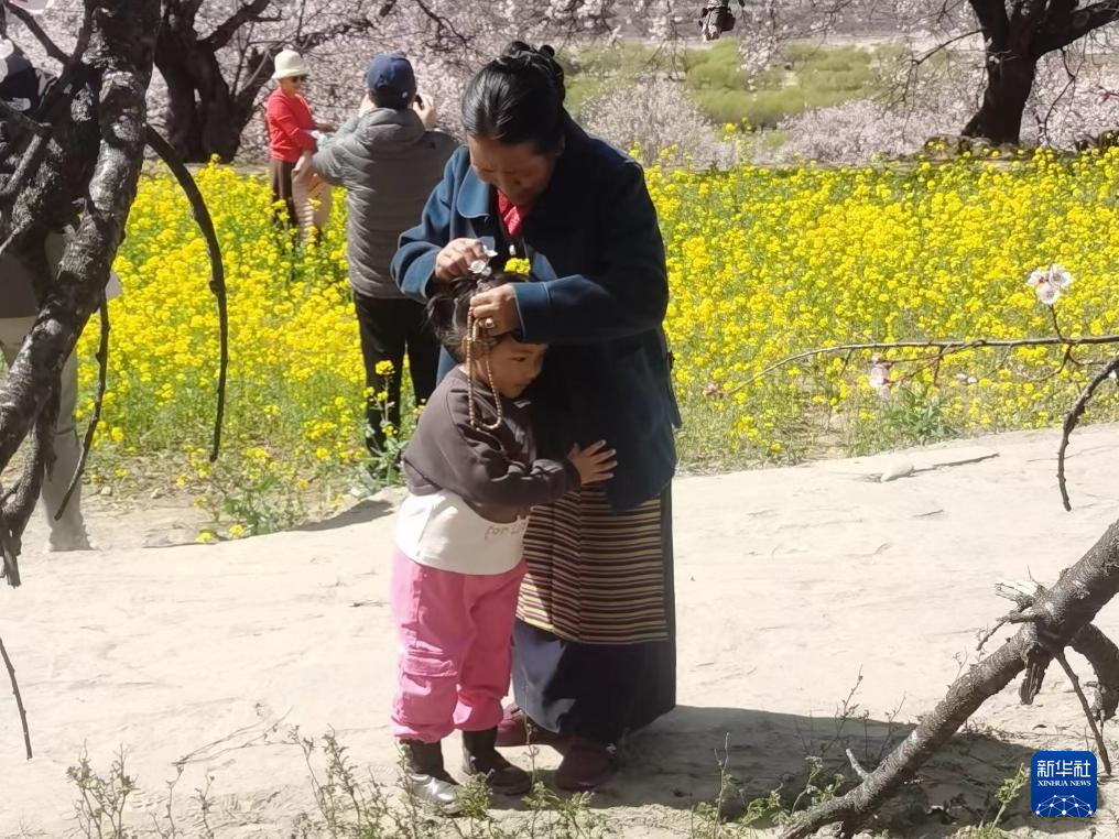 在桃花盛開的嘎拉村,游客正在賞花游玩(3月30日攝)。新華社記者 魏冠宇 攝