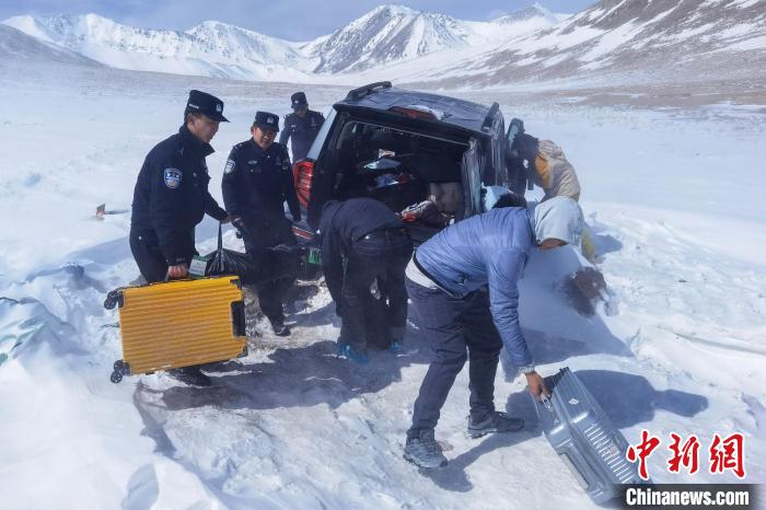 16日11時(shí)15分,巴嘎邊境檢查站接塔爾欽邊境派出所警情通報(bào):3名游客于4月14日下午駕車前往西藏阿里地區(qū)革吉縣亞熱鄉(xiāng),誤入玖瑪溝無(wú)人區(qū),車輛陷入省道518線一路牌附近的積雪中無(wú)法動(dòng)彈,已被困40小時(shí)左右。其中一名游客情況危急,血氧含量較低,請(qǐng)求先期處置。接到警情通報(bào)后,巴嘎邊境檢查站立即組織民警攜帶便攜式氧氣瓶和救援工具趕赴現(xiàn)場(chǎng)。