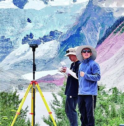 成都理工大學(xué)科研人員使用無人機(jī)對冰川進(jìn)行熱紅外和正射影像作業(yè)。葉川攝/光明圖片