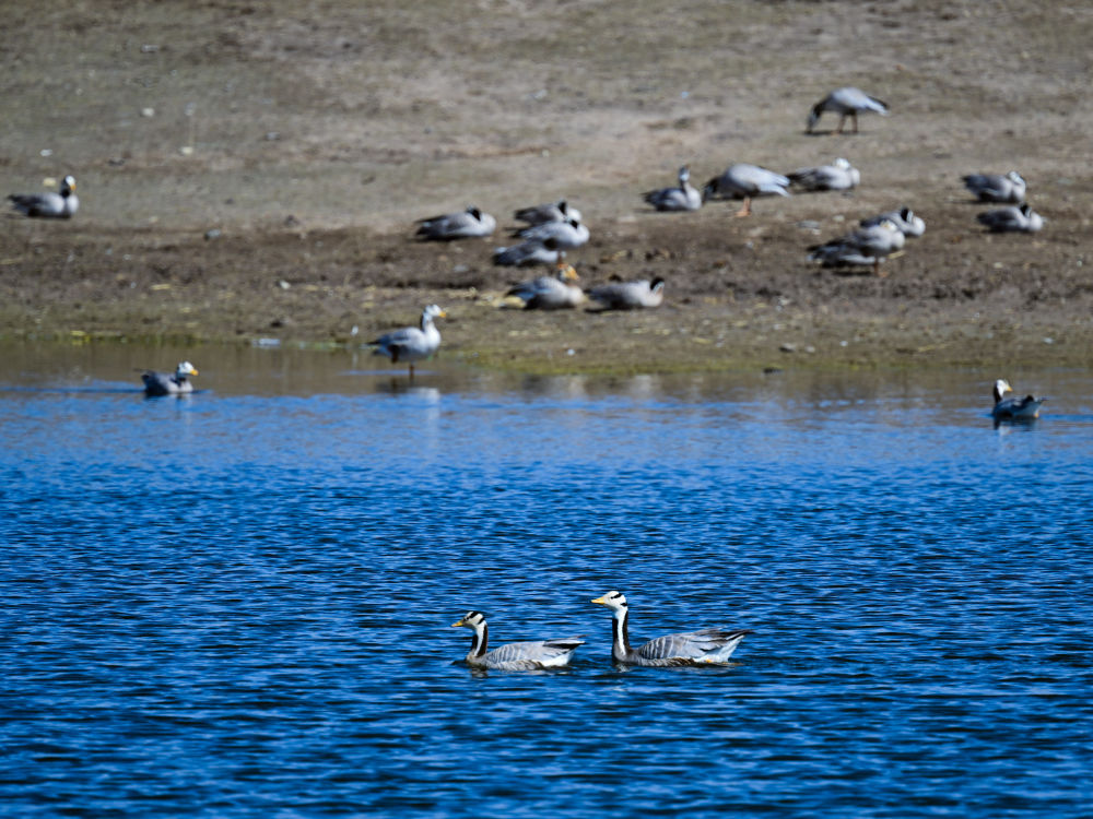 這是2024年5月26日在長(zhǎng)江源頭地區(qū)的班德湖畔拍攝的斑頭雁。新華社記者 張龍 攝