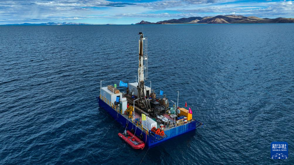 在海拔超過(guò)4700米的西藏納木錯(cuò),湖泊巖芯鉆探工作正在開(kāi)展中。