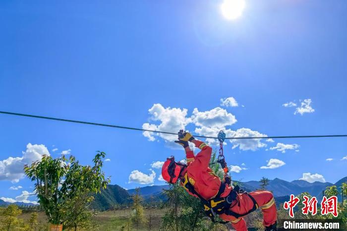 圖為昌都森林消防進行地震救援破拆訓練。姚天銳 攝