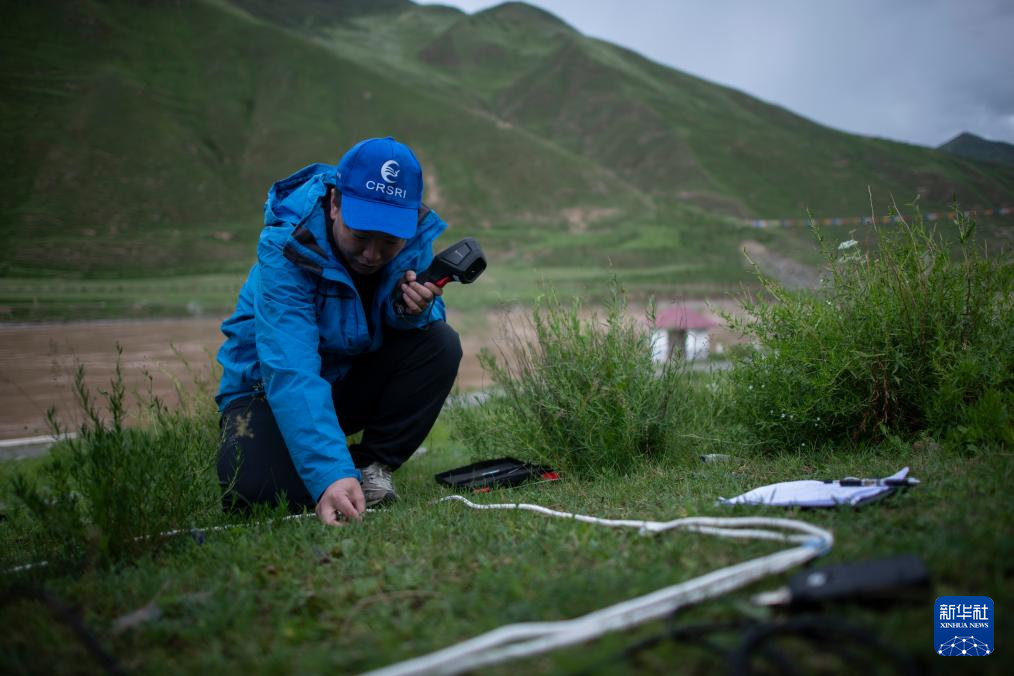 7月20日,在直門達水文站,長江科學院水土保持研究所任斐鵬在進行植被生態(tài)和水土流失調(diào)查。新華社記者 伍志尊 攝