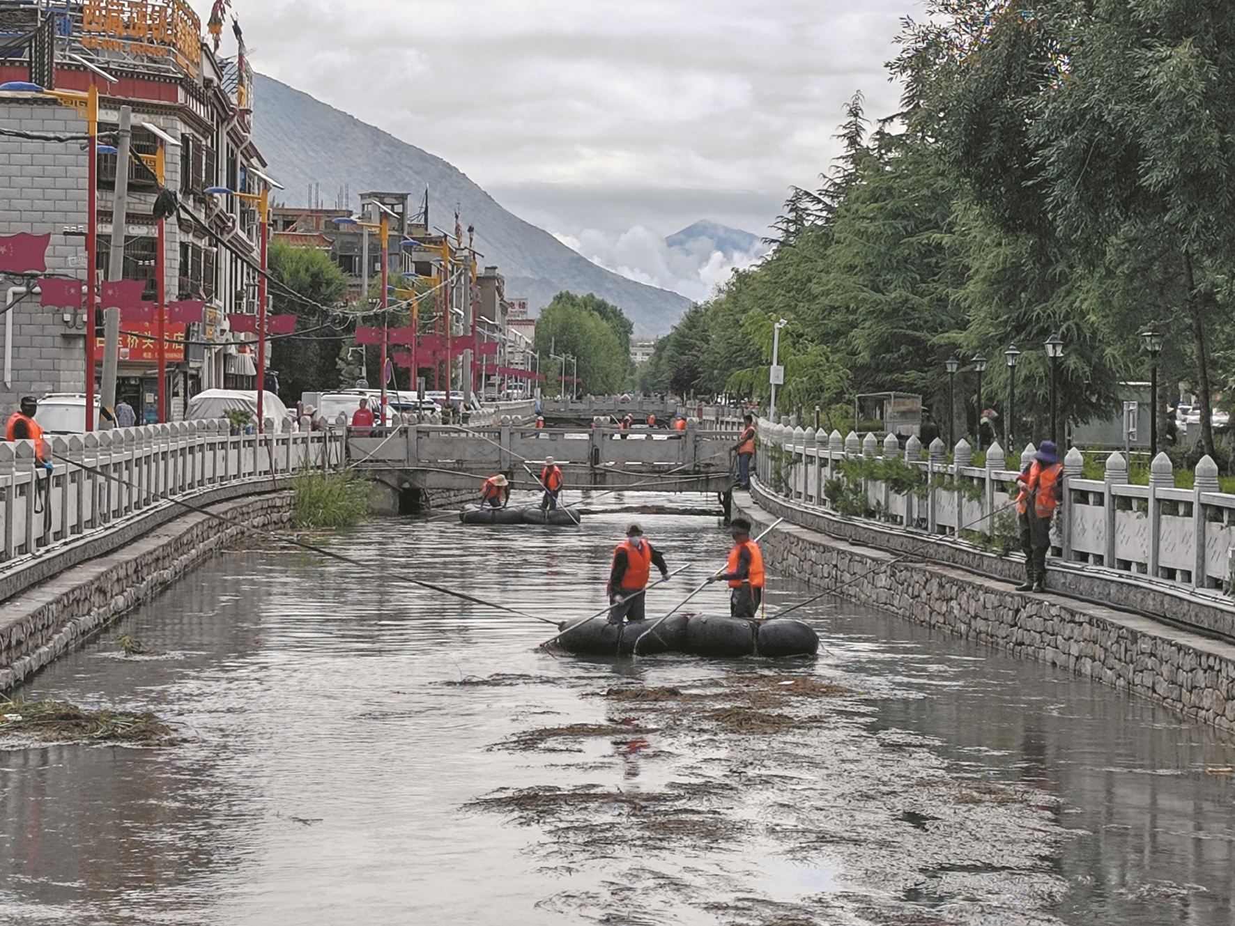 圖為工作人員在清理河道。拉薩融媒記者 小拉姆次仁攝