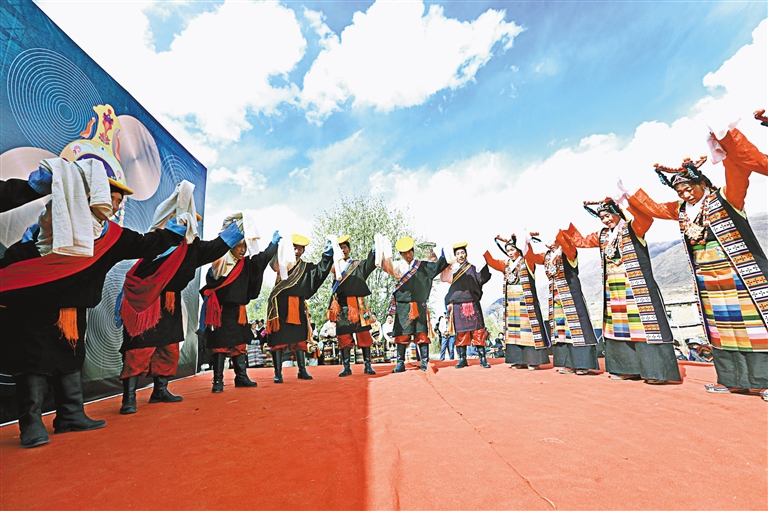甲瑪鄉(xiāng)諧欽隊(duì)在非遺巡展活動(dòng)上表演諧欽。