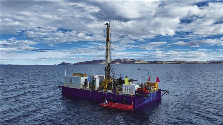 納木錯(cuò)水上鉆探平臺(tái)(無人機(jī)照片)。 新華社記者 晉美多吉 攝