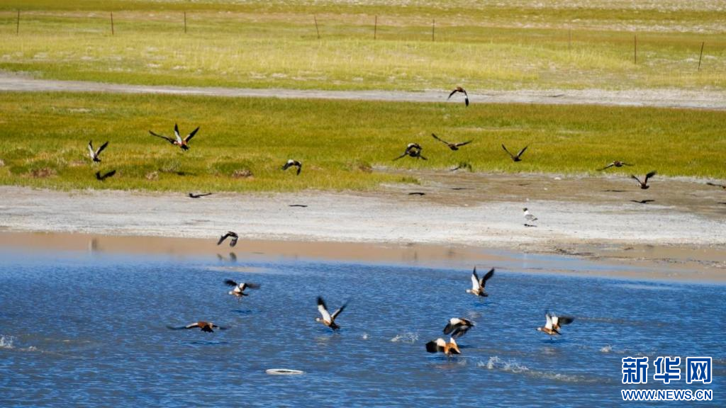 錯鄂湖附近棲息的赤麻鴨(8月25攝)。新華網(wǎng)發(fā) 謝炆圻 攝