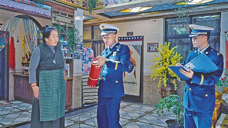 在扎西曲登社區(qū),乃東區(qū)消防救援大隊(duì)將消防安全措施與藏戲元素有機(jī)融合,從藏漢雙語(yǔ)消防通道的醒目標(biāo)識(shí),到廣場(chǎng)的藏戲消防人偶,再到房間內(nèi)具有消防元素的生活用品,消防安全宣傳體現(xiàn)在民俗民宿村的每一個(gè)細(xì)節(jié),讓游客在輕松愉快的氛圍中提升消防安全意識(shí)。同時(shí),為每戶(hù)民宿經(jīng)營(yíng)戶(hù)配備了獨(dú)立式感煙報(bào)警器、燃?xì)庾詣?dòng)切斷閥、應(yīng)急包等家用消防器材,確保能夠及時(shí)發(fā)現(xiàn)處置初期火災(zāi)。此外,還在扎西曲登社區(qū)建立微型消防站,配備基本的滅火救援裝備,著力建立滅火救援快速響應(yīng)機(jī)制,全力保障居民和游客的生命財(cái)產(chǎn)安全。