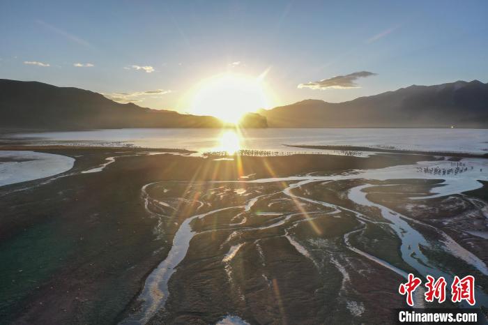 11月27日晨,西藏自治區(qū)拉薩市林周縣黑頸鶴保護區(qū)內(nèi),大量越冬的黑頸鶴在虎頭山水庫覓食、嬉戲。林周縣位于拉薩河上游及澎波河流域,平均海拔約4200米,是黑頸鶴的主要越冬地之一。(無人機照片)中新社記者 貢嘎來松 攝