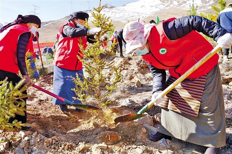 今年3月12日是第47個(gè)植樹節(jié)。當(dāng)天,西藏各地舉行了植樹活動(dòng),干部群眾紛紛走進(jìn)綠化區(qū)、綠化點(diǎn)參加義務(wù)植樹活動(dòng)?;顒?dòng)現(xiàn)場,大家熱情高漲,分工協(xié)作,配合默契。有的揮鍬鏟土,有的扶苗培土,有的踩實(shí)固根,還有的提桶澆灌,各個(gè)環(huán)節(jié)緊密銜接,現(xiàn)場一片繁忙。