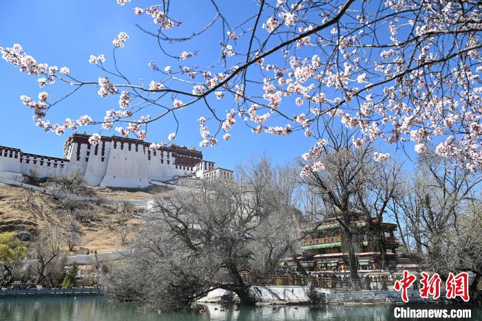 3月24日,在西藏自治區(qū)拉薩市宗角祿康公園,杏花競(jìng)相綻放,春意盎然。中新社記者 貢嘎來松 攝