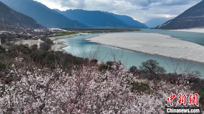 3月28日,西藏自治區(qū)林芝市,雅魯藏布江碧綠的江水與岸畔的桃花、遠(yuǎn)處的雪山相映成趣,春意盎然。雅魯藏布大峽谷全長(zhǎng)504.6公里,最深處6009米,被認(rèn)為是世界上長(zhǎng)度最長(zhǎng)、深度最深的大峽谷。中新社記者 馬銘言 攝