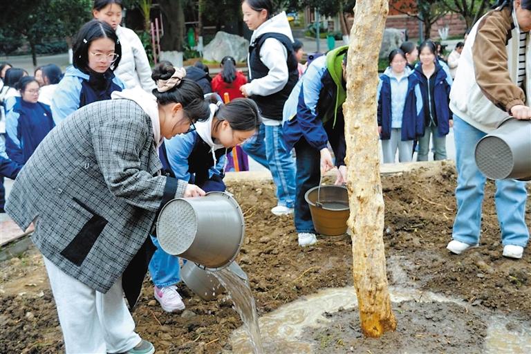 近日,四川省綿陽(yáng)市安州中學(xué)組織首屆西藏班學(xué)生在該校沙汀廣場(chǎng)種下象征民族團(tuán)結(jié)的石榴樹(shù),埋下許愿瓶,鑄牢中華民族共同體意識(shí),踐行“綠水青山就是金山銀山”的生態(tài)理念。