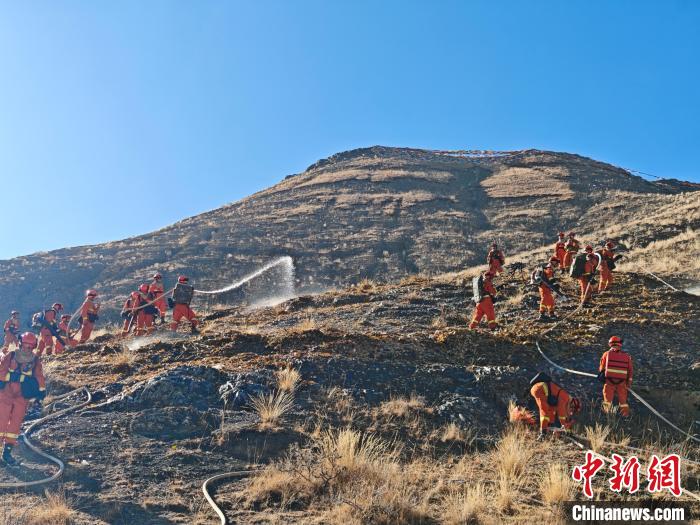 圖為西藏森林消防總隊(duì)隊(duì)員進(jìn)行可燃物增濕灑水作業(yè)。王治平 攝
