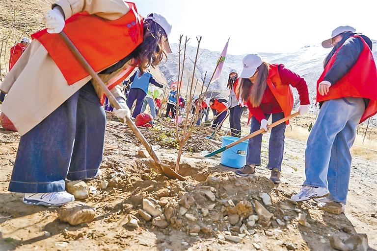 圖為植樹現(xiàn)場(chǎng)。記者 王靜 貢曲羅杰 阿旺尼瑪 桑旦歐珠 攝