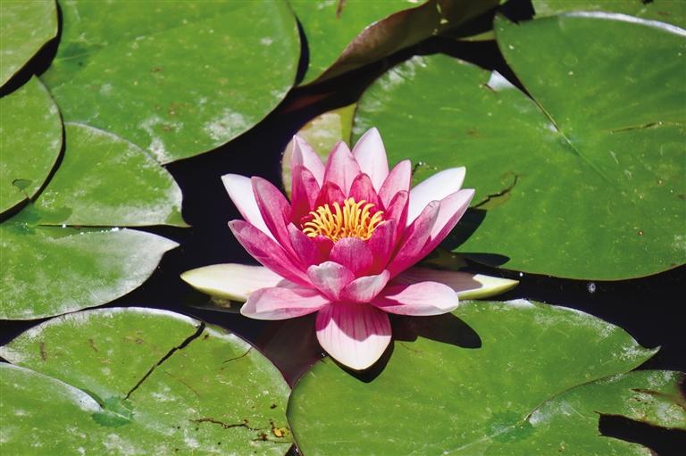 “移舟水濺差差綠,倚欄風(fēng)搖柄柄香?!弊哌M(jìn)柳梧國(guó)際總部城院內(nèi),在停車場(chǎng)的東側(cè),一池蓮花在層層蓮葉的襯托下開得正盛。走近池邊,蓮葉特殊的淡淡香味夾雜著潮濕的水汽撲面而來(lái)。粉、白的蓮花在幾場(chǎng)雨過(guò)后,迎著陽(yáng)光依次綻放。幾個(gè)孩子在池邊嬉戲追逐,時(shí)不時(shí)用手挑起水花四濺,遠(yuǎn)遠(yuǎn)看去,頗有“小姑貪戲采蓮遲”的意味。