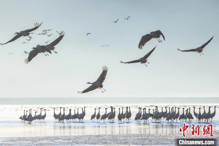 圖為拉薩市林周縣境內(nèi)越冬的黑頸鶴。資料圖 貢嘎來松 攝