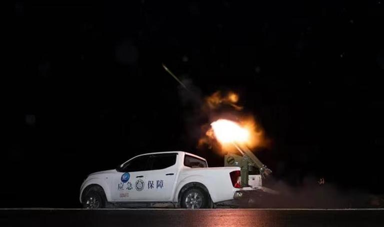 拉薩市人工影響天氣領(lǐng)導(dǎo)小組辦公室工作人員正在實施作業(yè)。圖由拉薩市氣象局提供