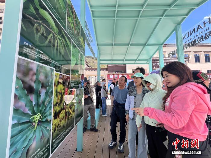 9月5日下午,參與項(xiàng)目啟動(dòng)的部分專家學(xué)者和媒體代表,參觀林芝市生物多樣性科普宣傳微展覽。潘旭臨 攝