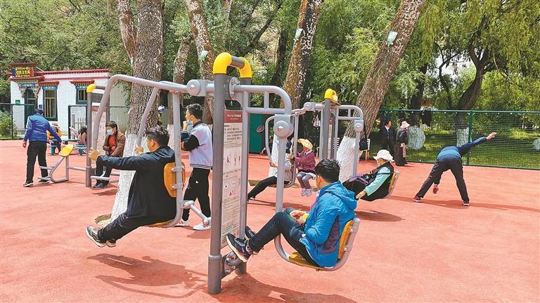 市民在拉薩團結(jié)公園內(nèi)游玩。