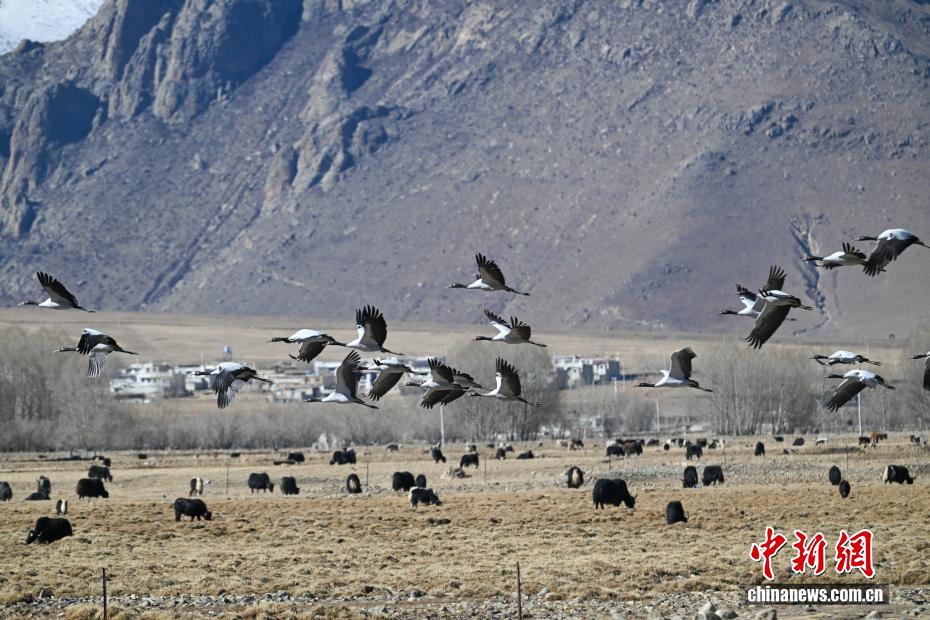西藏:越冬黑頸鶴“做客”林周 繪就生態(tài)樂園