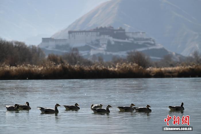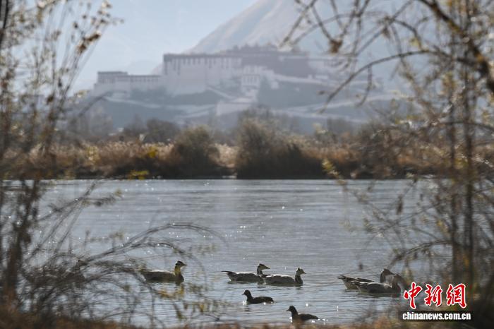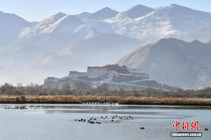 2025年12月9日,世界海拔最高的城市內(nèi)陸天然濕地——拉薩拉魯濕地國(guó)家級(jí)自然保護(hù)區(qū)盡顯冬日盛景。這片總面積12.2平方公里的“拉薩之肺”,初冬時(shí)節(jié)蘆葦泛金,赤麻鴨、斑頭雁等候鳥(niǎo)在此嬉戲覓食。遠(yuǎn)處布達(dá)拉宮巍然矗立,周邊雪山皚皚,自然生態(tài)與人文景觀(guān)交相輝映,構(gòu)成一幅兼具壯闊與靈動(dòng)的高原畫(huà)卷,彰顯著拉薩人與自然和諧共生的生態(tài)之美。圖為拉薩市民在拉魯濕地晨練。中新社記者 貢嘎來(lái)松 攝